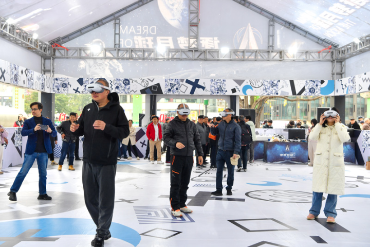 記者了解到,作為本次活動科技亮點,AI沉浸式作品——“逐夢月球”VR沉浸式體驗在活動中正式首發。25分鐘的“登陸月球”VR體驗讓參與者仿佛置身于月球表面,沉浸式感受航天探索的魅力。