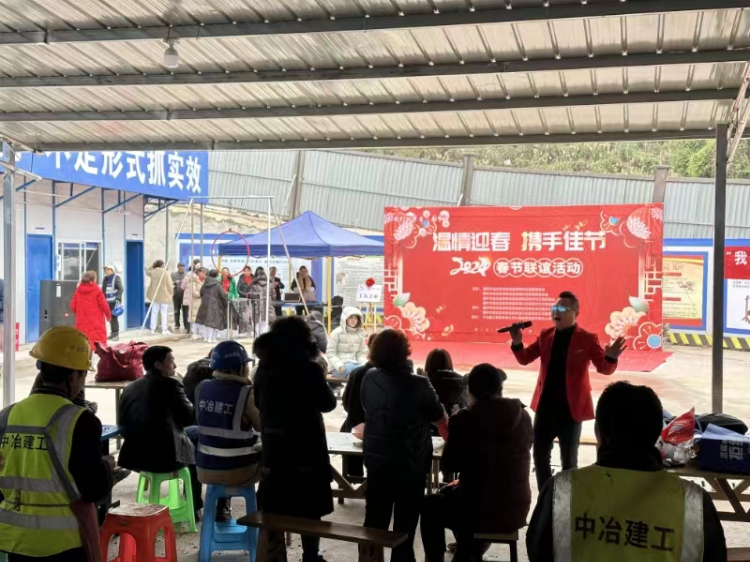 在川美悅來校區實驗中心項目部,“溫情新春 攜手佳節”春節聯誼活動火熱開展,活動以“工友之家”的授牌儀式為契機,展現了社區對工友們的關愛。活動現場節目豐富多彩,包括歌舞表演、魔術、朗誦、變臉等,表演者們用他們的才藝和熱情為觀眾帶來了一場熱鬧非凡的盛會。