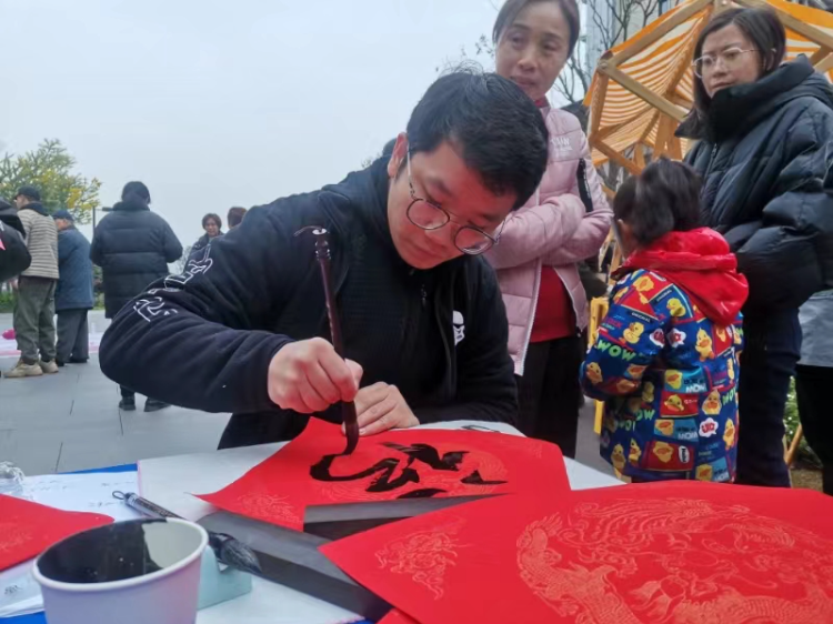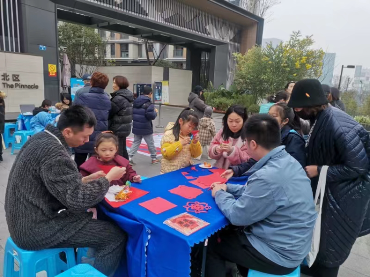 在合力社區云山岳小區,書法愛好者們揮毫潑墨,現場書寫春聯,贈送“福”字。只見他們平攤紅紙,屈身伏案,在一筆一劃中書寫對春節的祝福,大家集思廣益,創作出一幅幅有趣味、接地氣的春聯,現場暖意融融,充滿濃濃年味。另一邊,伴隨著輕微的“咔嚓”聲,寓意美好、風格獨特的窗花在剪刀一起一落間,造型各異的圖案躍然而起,漂亮的窗花把小區裝扮得春意盎然,一張紅紙,一把剪刀,為社區增添了一抹喜慶的“中國紅”。