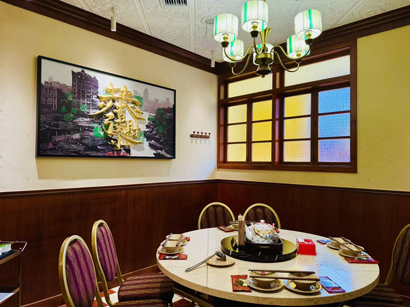 一腳踏進包房,80年代的豪華感瞬間把人裹住。水晶吊燈亮得晃眼,木質家具摸著手感厚重,連小擺件都透著老時光的精致,“復古”不是掛在墻上的字,是坐在這兒就有的踏實貴氣。更有意思的是這兒的儀式感——剛坐下,一句“吃總財,當總裁,發大財”就送到耳邊,不是虛頭巴腦的客套,是熱熱鬧鬧的好彩頭,聽著就覺得這頓飯,好運先來了一半。