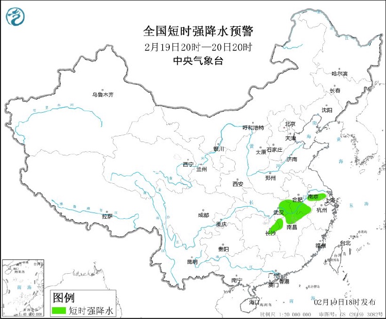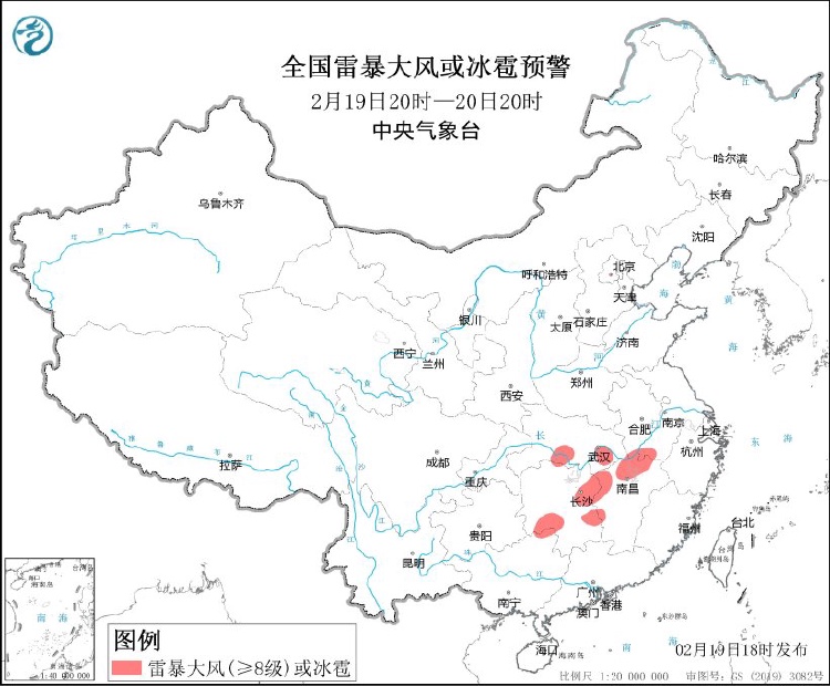 中央氣象臺2月19日18時發布強對流天氣藍色預警:預計2月19日20時至20日20時,安徽南部、湖北東部和南部、湖南中南部、江西中北部、廣西東北部等地的局地將有8-10級雷暴大風或冰雹天氣;安徽中南部、江蘇南部、湖北東部、湖南東北部、江西北部等地的部分地區將有短時強降水天氣,最大小時雨量20-30毫米,局地可達35毫米以上。
