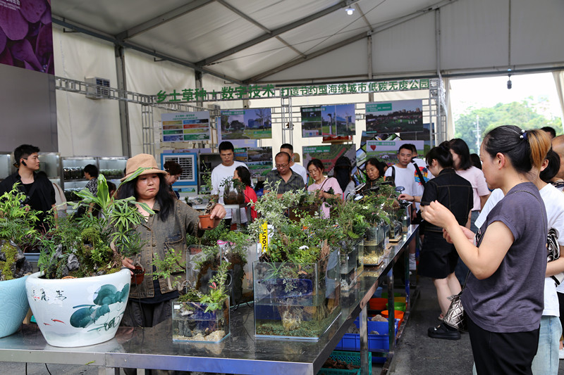 漫步在成都世園會郫都分會場,郁郁蔥蔥的植物令人目不暇接。藍角柱、小藍雪、玲瓏藍角柱、大藍角柱、毛子角蒿、白及、蜀葵……在川花自主創(chuàng)新園內(nèi),各種本土植物研究應用成果讓人們大開眼界;層層疊疊的花境俯拾皆是,一步一景,景致在植物、水系等之間變換,雨林景觀花境與不同用途的園藝資材,在花卉園藝場景館共同演繹五彩斑斕的花園生活。來自各地的游客們穿梭于色彩繽紛、各具特色的展廳中,拍攝聲、贊嘆聲回響于耳畔。
